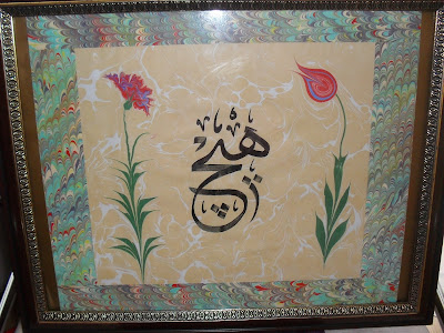bu yoğunlukta ilk hat tablomuda yazdım arada..candan arkadaşımın ebruları üstüne yazdım HİÇ.